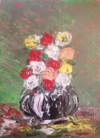 Vase de fleurs, acrylique 13x18 cm
